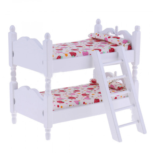 Кровать для кукол деревянная двухярусная. Масштаб 1:12. В комплекте: матрасики, подушки, лестницаМат..