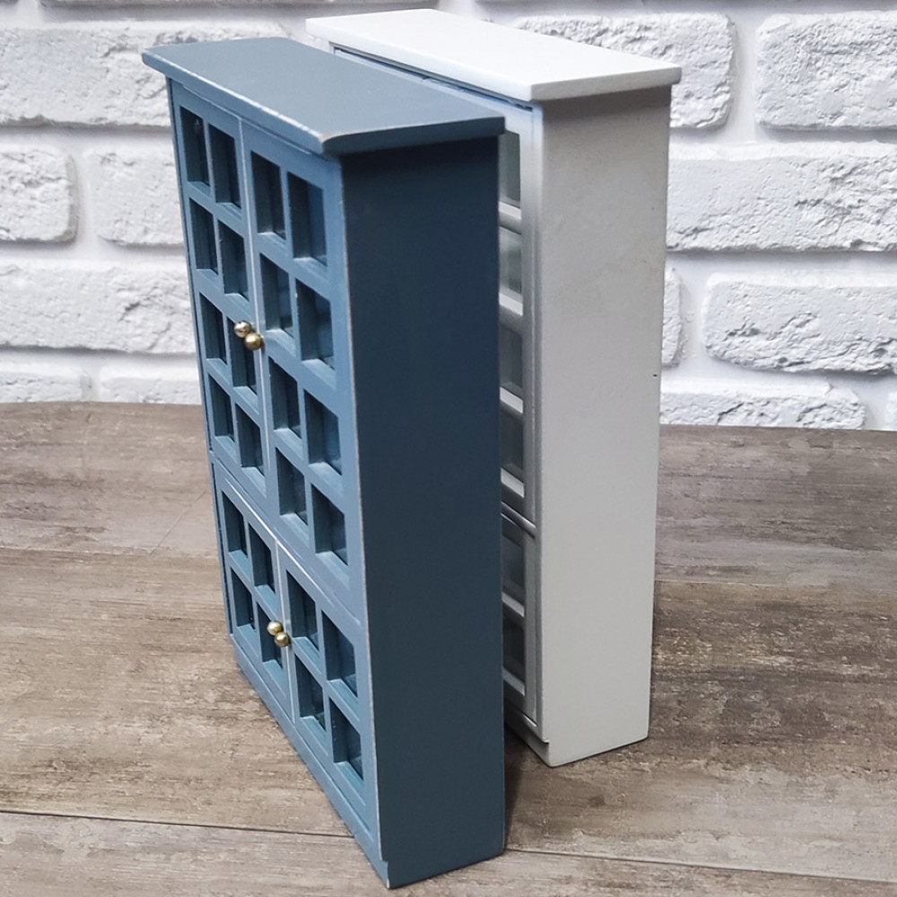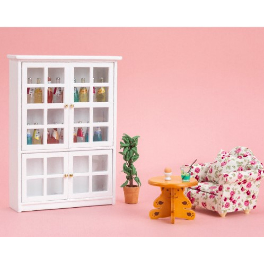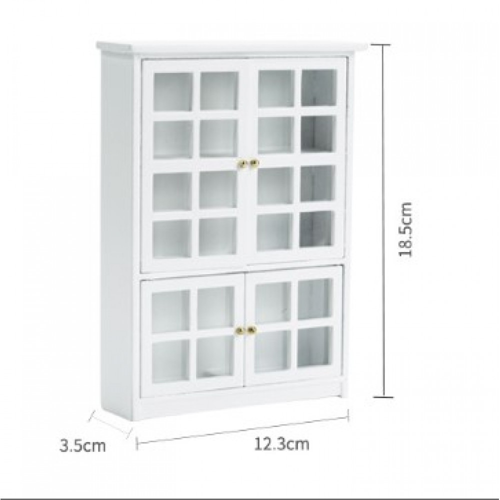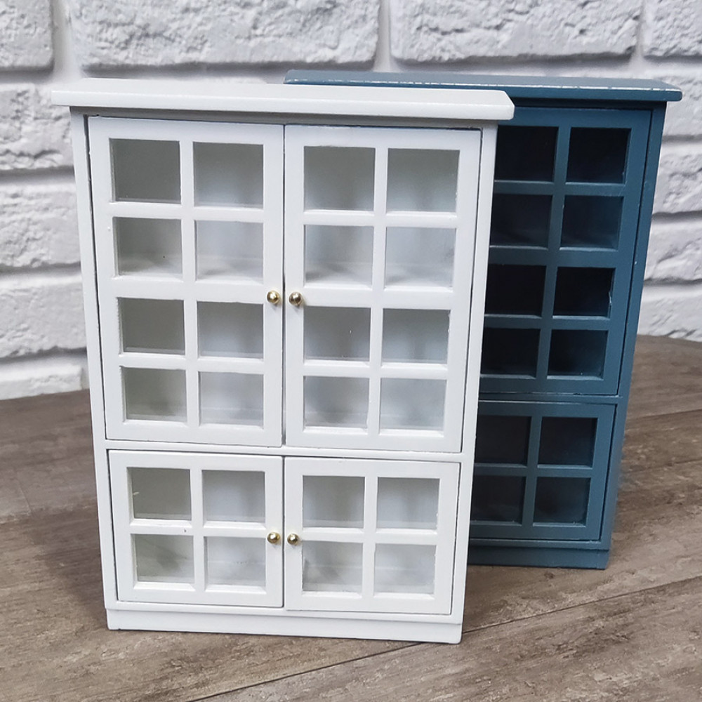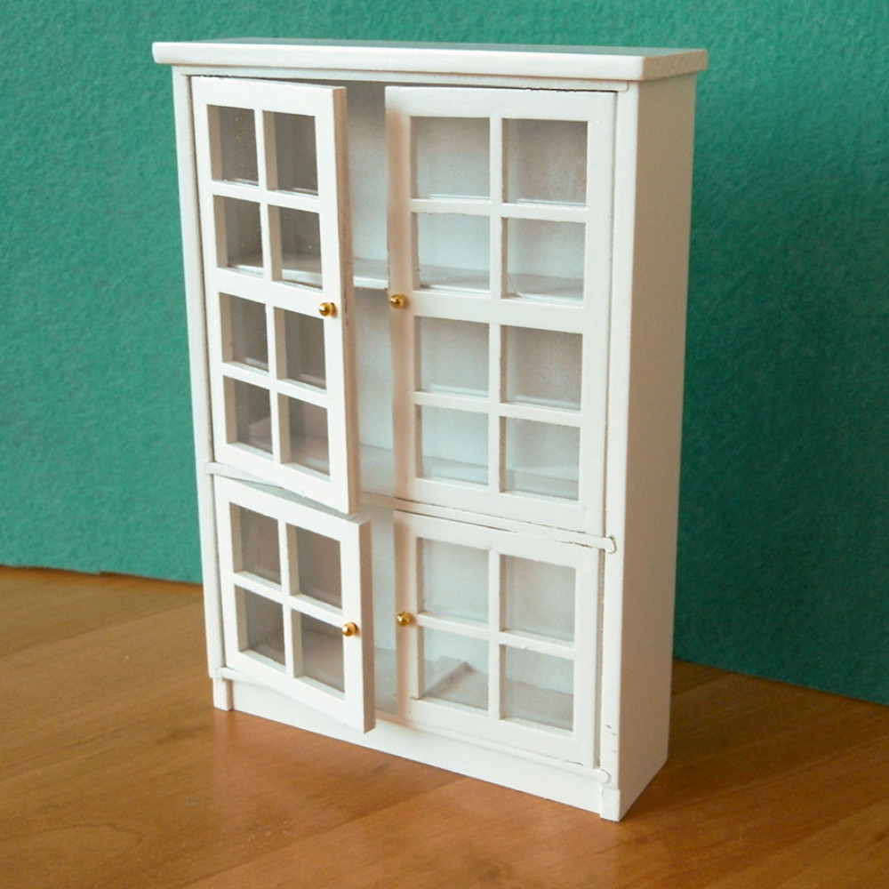 Деревянный застекленный шкаф с деревянными полками украсит кукольную кухню или гостинную.