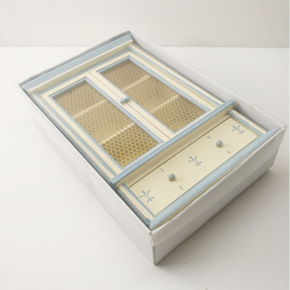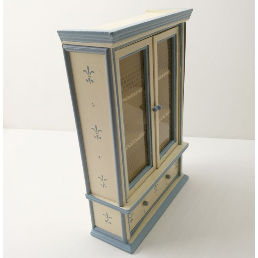 Симпатичный шкаф для кукол из натурального дерева с просторным нижним ящиком и прозрачными створками станет достойным дополнением гостиной или столовой в кукольном доме или румбоксов масштабом 1:12