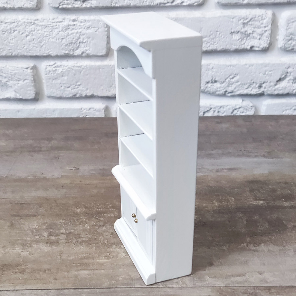 Миниатюрный деревянный шкаф с открытыми полками украсит кукольную гостиную, на него можно расставить книги, вазы, фоторамки и многое другое. Также такой шкаф подойдет и для кукольной кухни: внизу можно хранить продукты питания, наверху выставить красивую посуду.