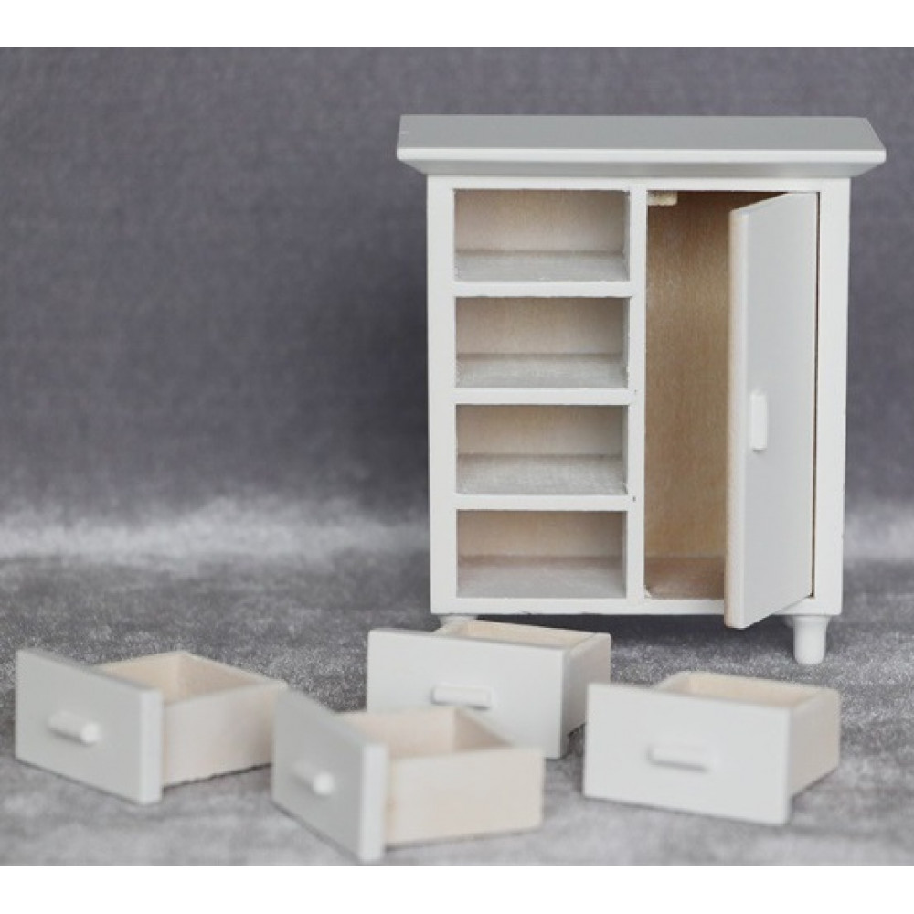 Миниатюрная тумба (комод) с ящичками для кукольного дома или румбокса. Масштаб миниатюры 1:12. Такая деревянная тумбочка подойдет для кухни, столовой, спальни, детской или ванной комнаты