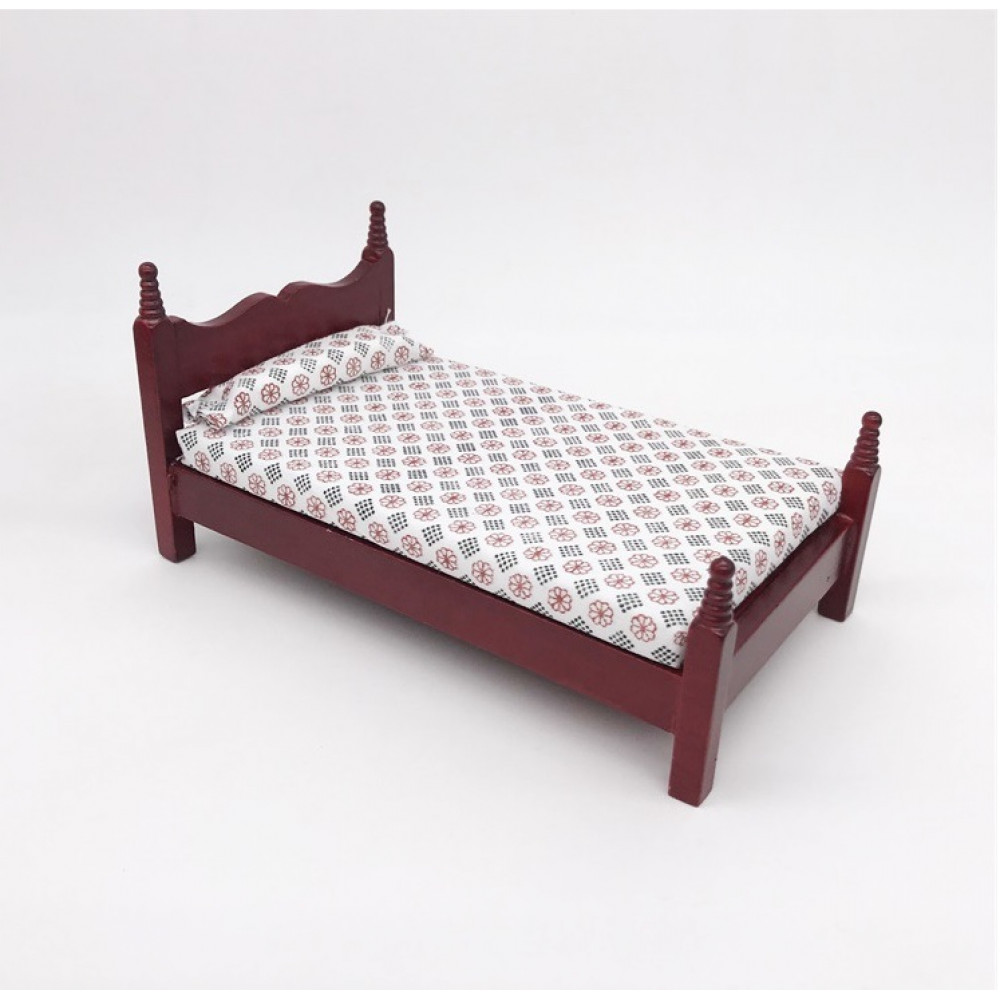 Кровать для кукол деревянная. Миниатюра для румбоксов и кукольных домиков масштаб 1:12 (для кукол ростом около 12 см).