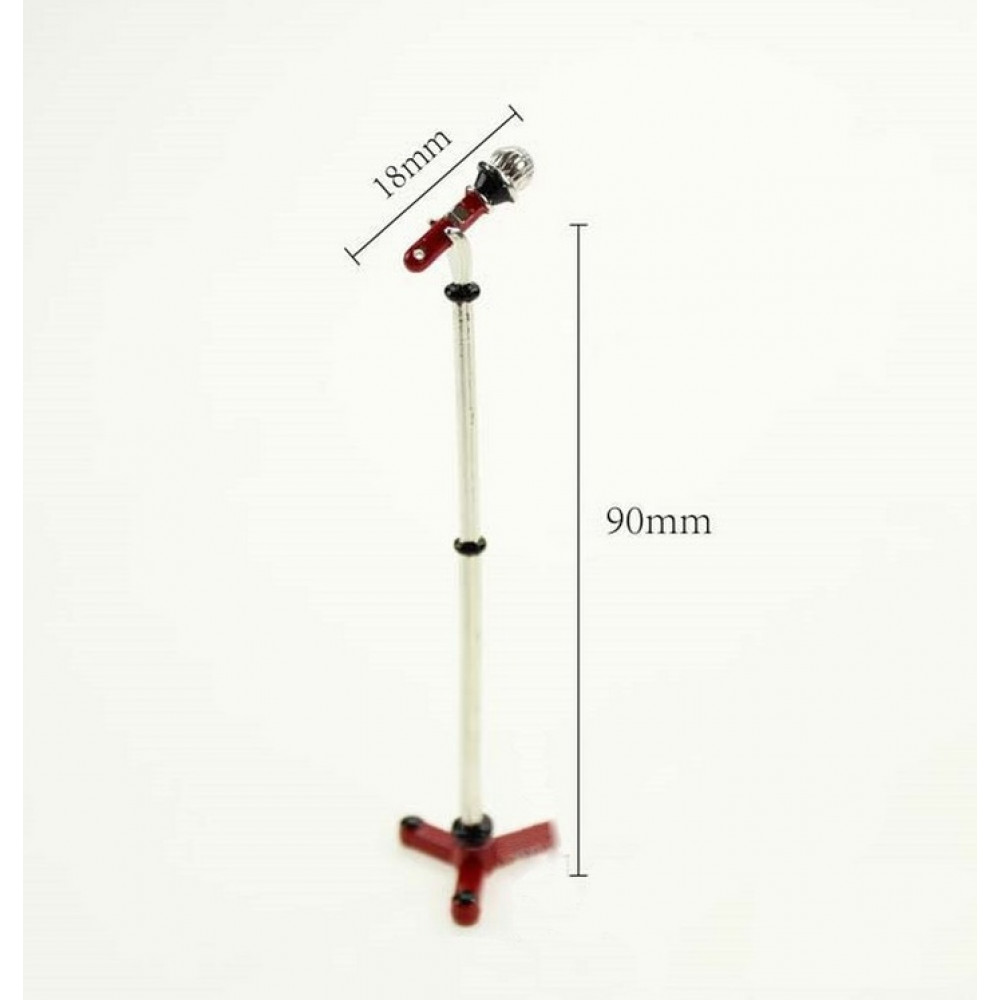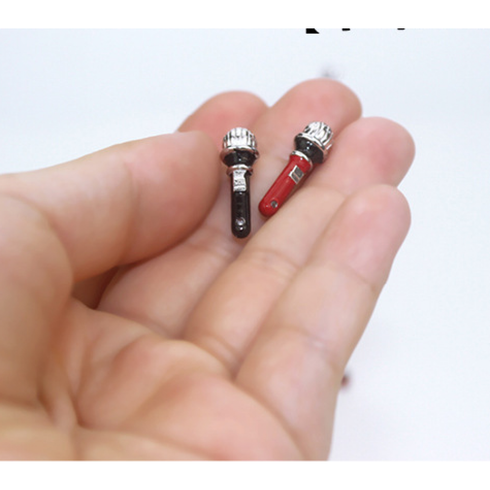 Микрофон для кукольного дома красного и черного цветов. Миниатюра для румбоксов масштабом 1: 12 (для кукол ростом около 12 см)
