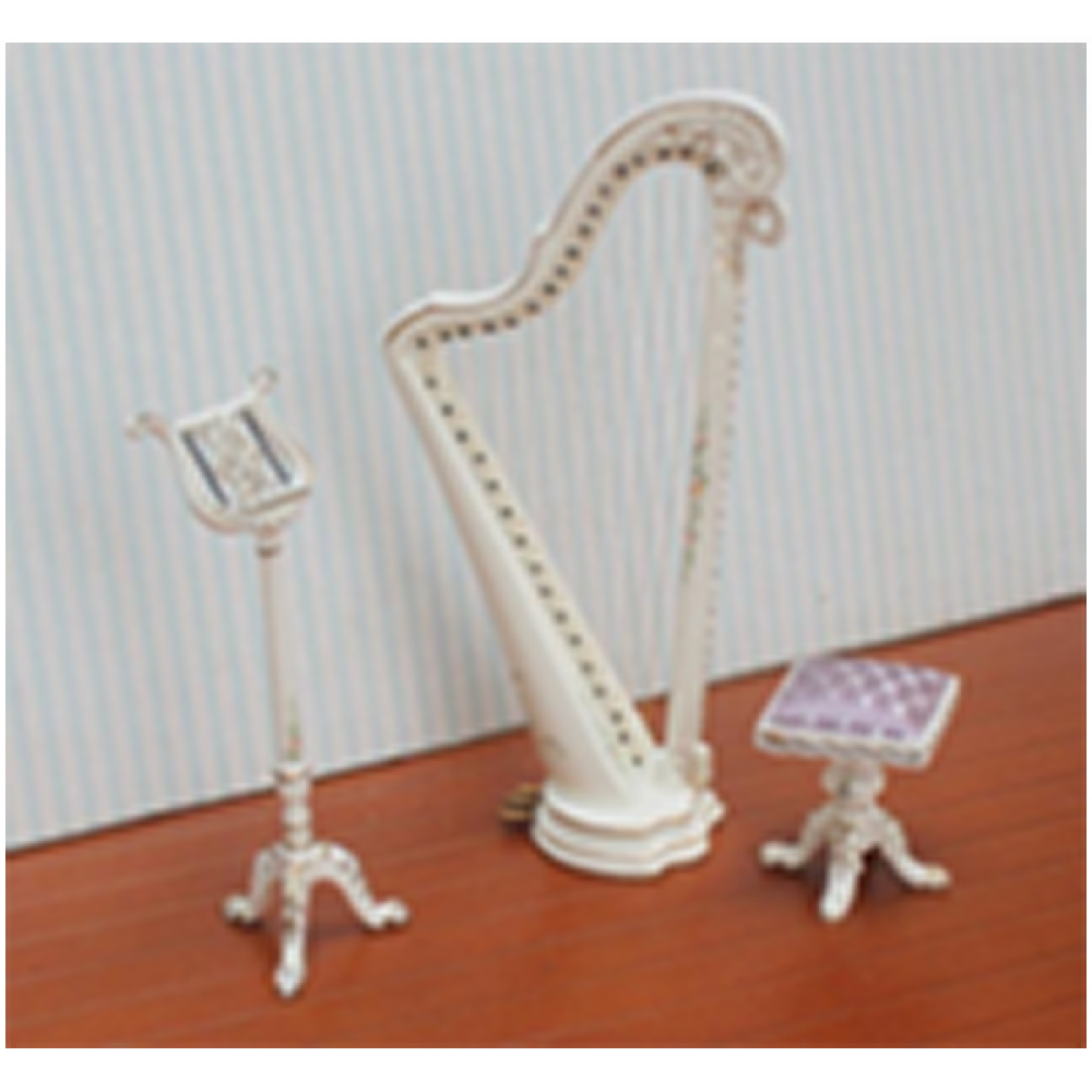 Миниатюра для кукол Арфа со стульчиком и пюпитром Белая