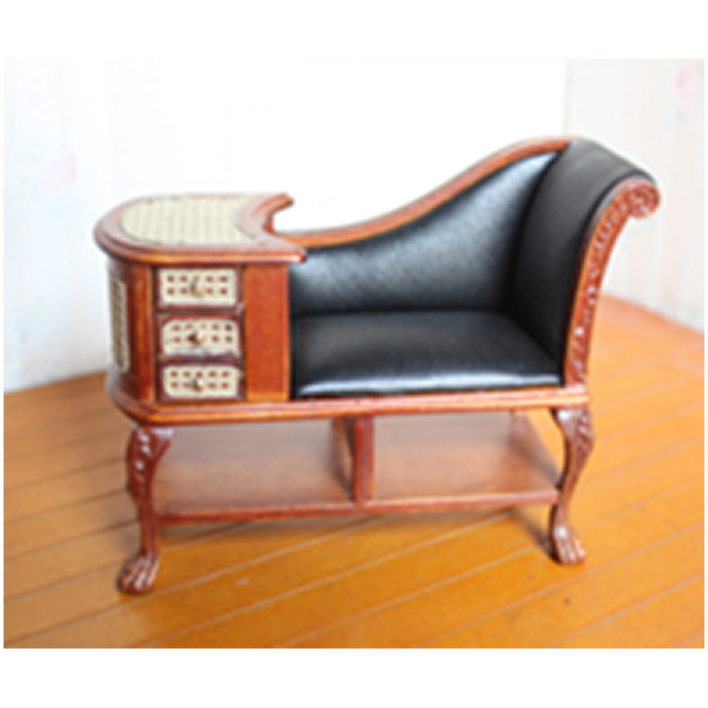 Миниатюра для кукол Козетка черная с тумбой Орех