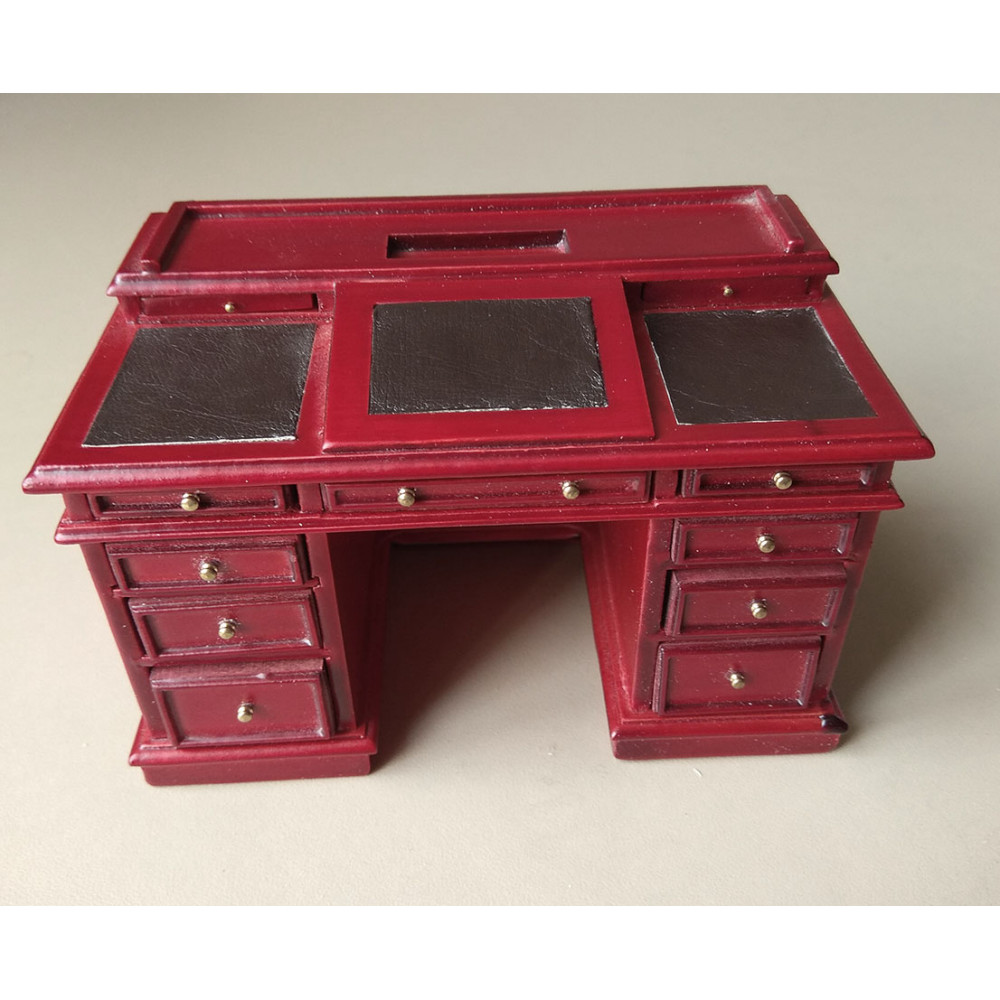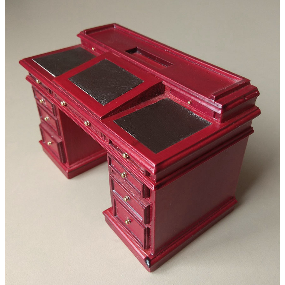 Стол письменный выполнен из дерева, цвет махагон, столешница отделана кожей. Такая деревянная мебель подойдет для оформления румбокса или кукольного домика.