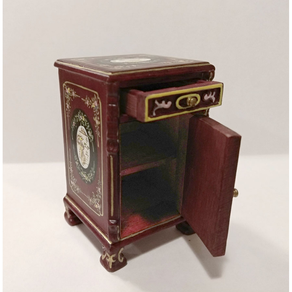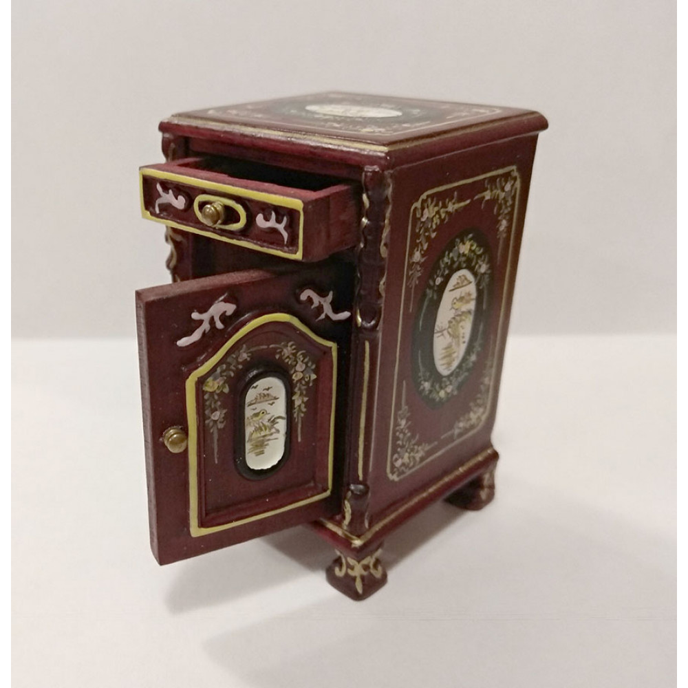 Оригинальная миниатюрная тумбочка с ручной росписью для кукольного дома или румбокса. Дверца открывается, ящичек выдвигается. Материал: дерево. цвет: красное дерево, ручная роспись