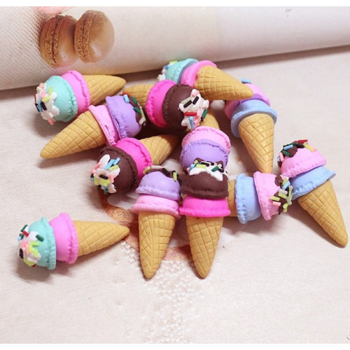 Миниатюрный вафельный рожок с яркими разноцветными шариками мороженого. Подойдет для оформления доми..