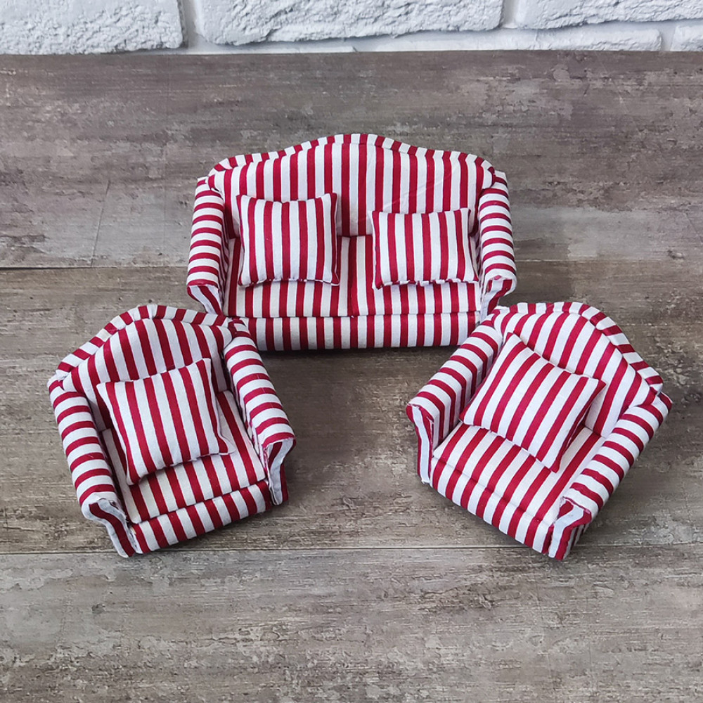 Мягкая мебель для кукол 2 кресла/диван Обивка полоска