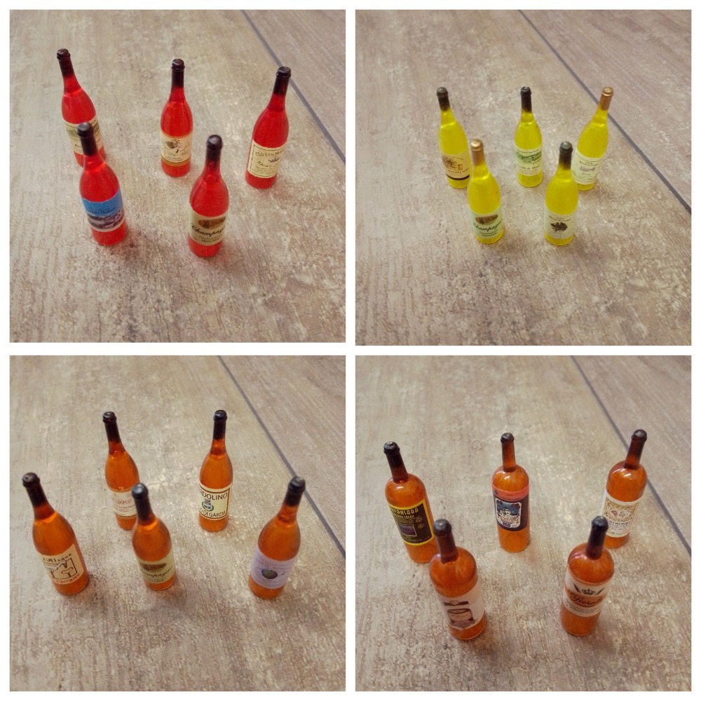 Миниатюрные бутылочки с вином для кукол. Подойду для сервировки праздничного стола, кукольного бара или погребка в кукольном домике и румбоксе масштабом 1:12