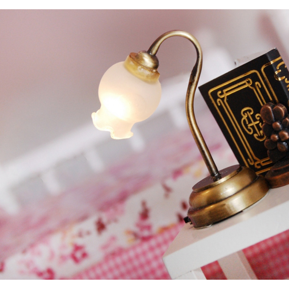 Настольная лампа с матовым плафоном на батарейке для кукол