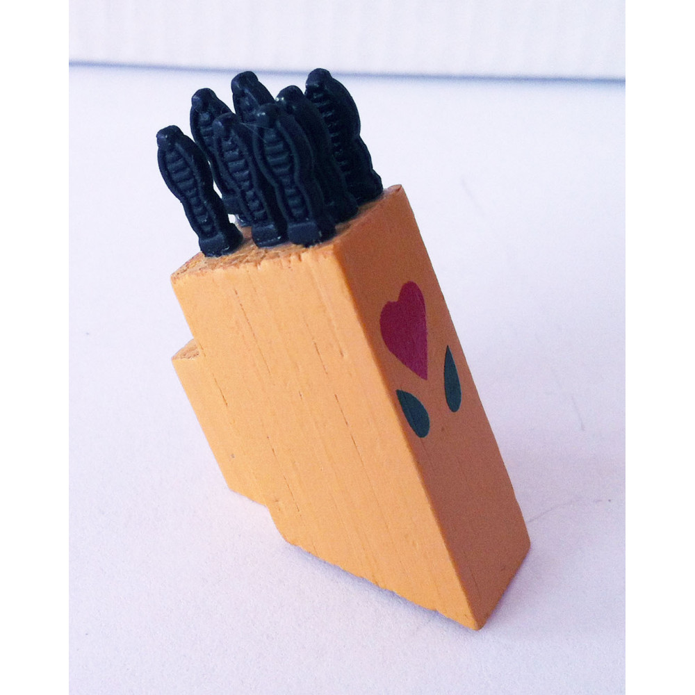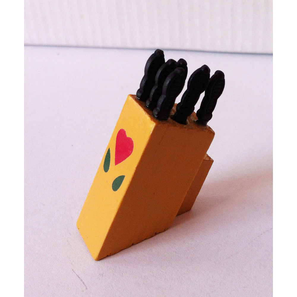 Ножи кухонные (7 штук) в деревянной подставке для кукол. Для куколок около 12 см