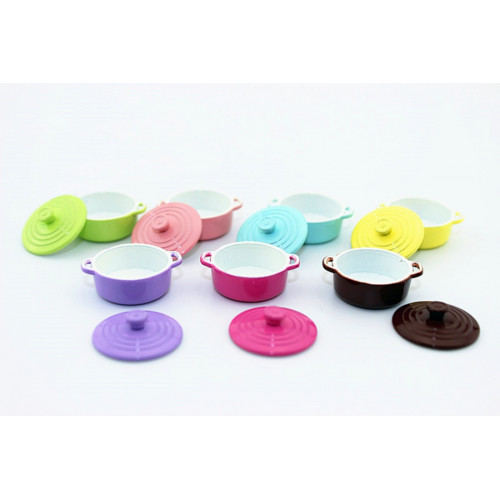Симпатичные миниатюрные кастрюльки трех расцветок для обустройства кукольной кухни или румбокса. Мин..