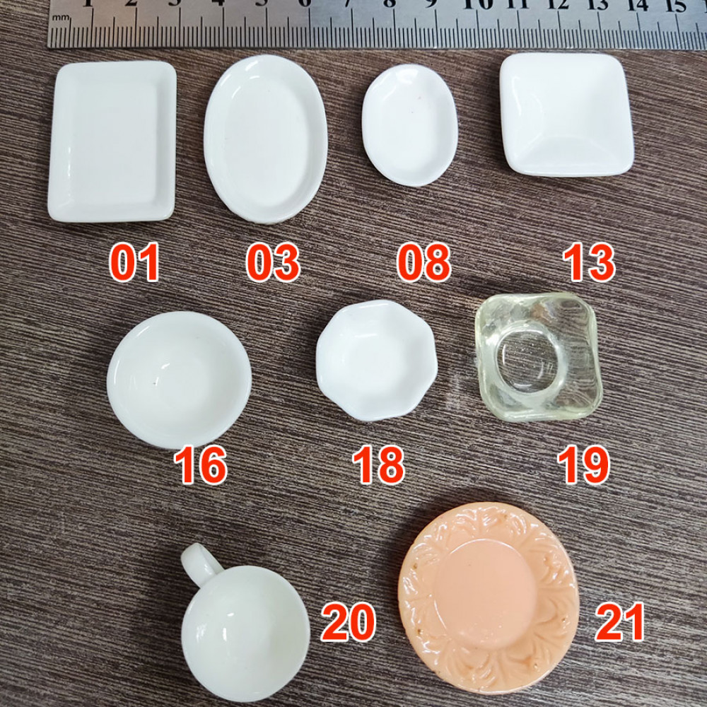 Миниатюрная посуда для кукол в ассортименте. Подойдет для кукол масштабом 1:6 (например, Барби) и куколок ростом до 12-15 см - масштаб 1:12. Соответственно, такая мини посудка может использоваться в качестве тарелок для кукол побольше или в качестве блюд, чаш и подносов для маленьких куколок.