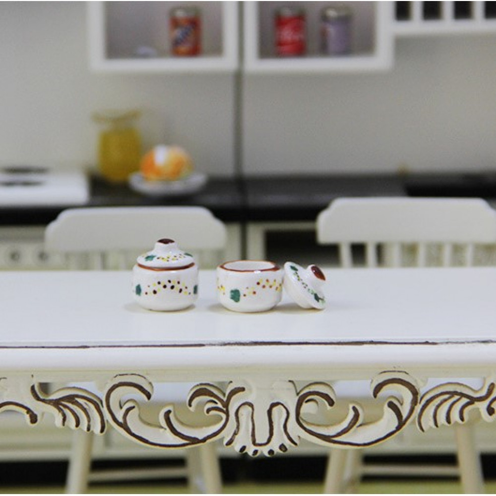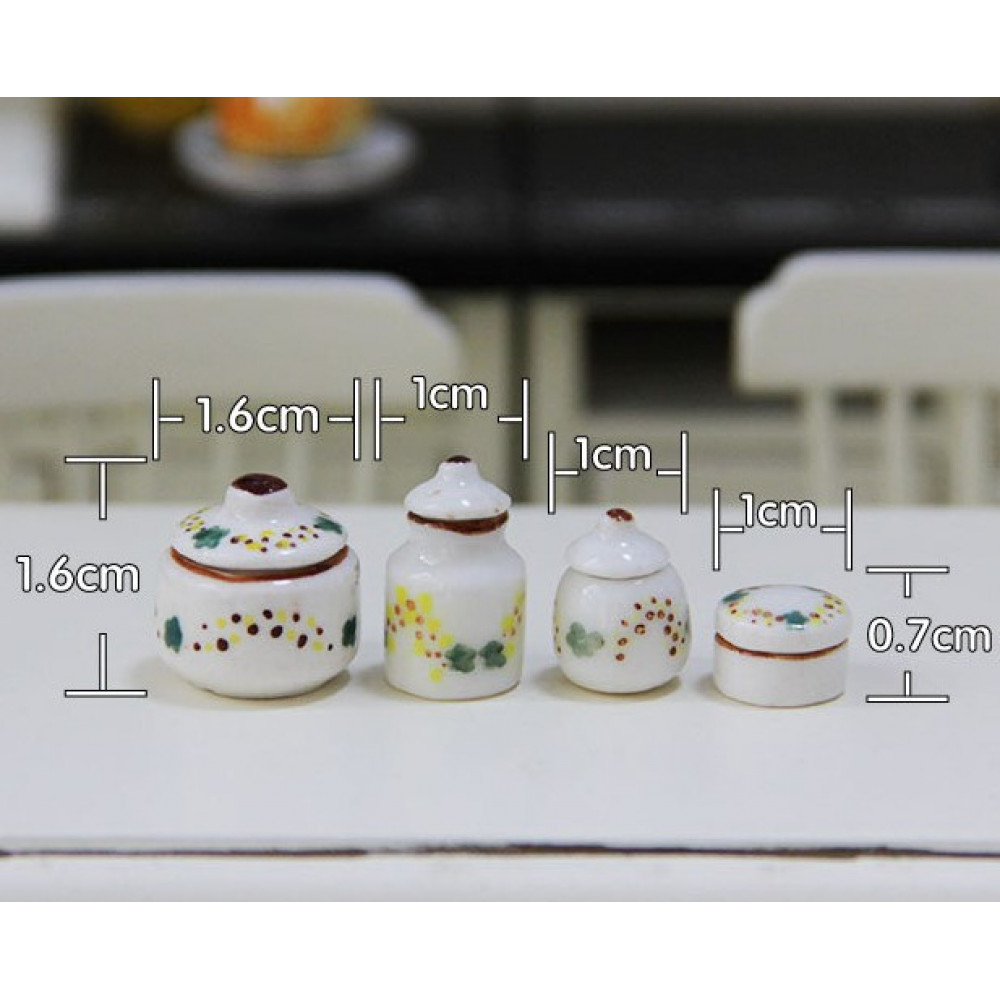 Набор миниатрных керамических баночек разных форм для хранения продуктов или мелочей. Миниатюра для обустройства кукольного дома или румбокса масштаба 1:12 или 1:6.