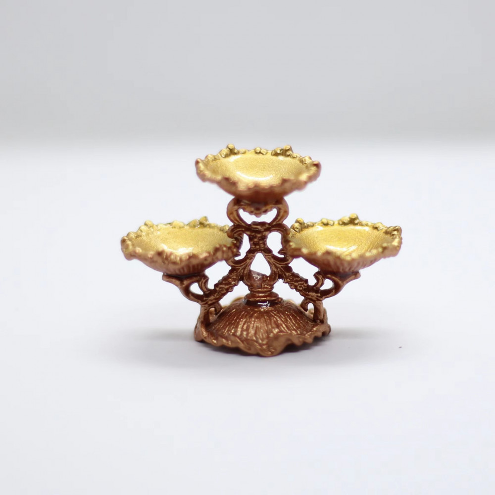 Миниатюрная металлическая ваза с тремя чашами для кукольного десерта.