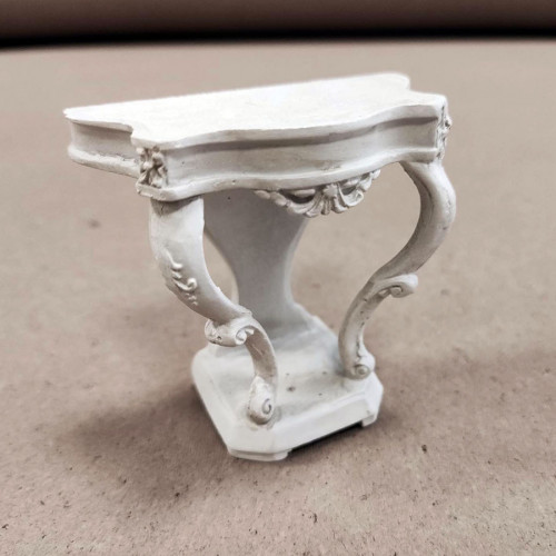 Миниатюрный консольный столик в стиле рококо белого цвета для кукольного дома или румбокса.Размер 6,..