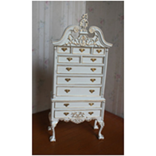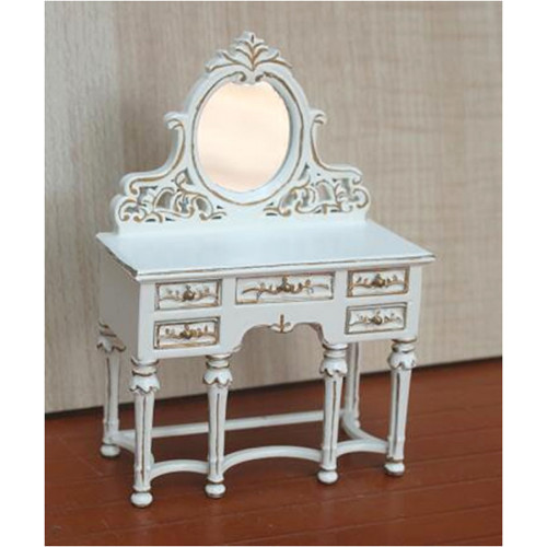 Миниатюрный элегантный секретер для кукол с выдвижными ящичками. Выполен из дерева. Белый c ра..