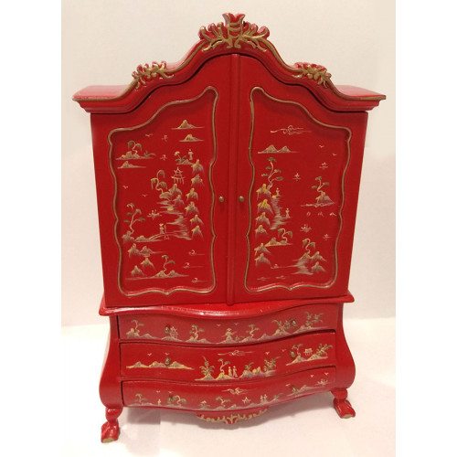 Роскошный кукольный шкаф-комод красного цвета, украшен росписью в китайском стиле. Деревянная мебель..