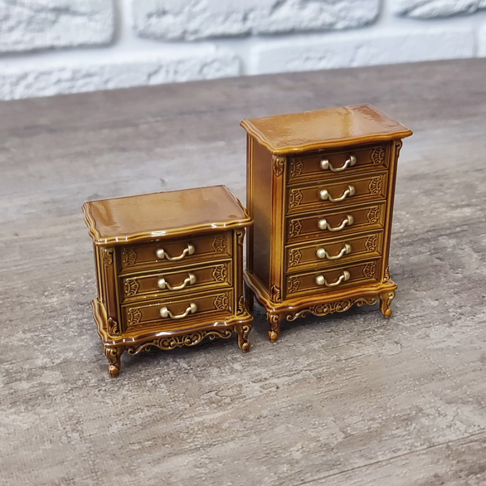 Оригинальный комод с резьбой для кукольного дома или румбокса. Ящички выдвигаются.