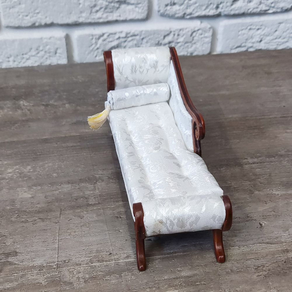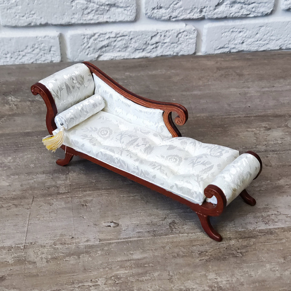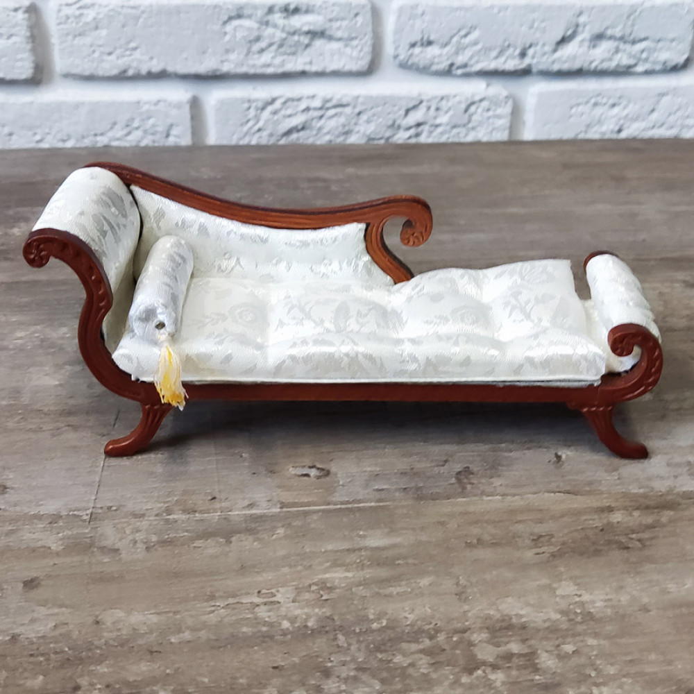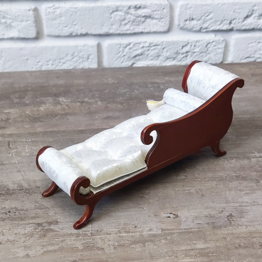 Миниатюра для кукол Козетка белая с валиком Орех