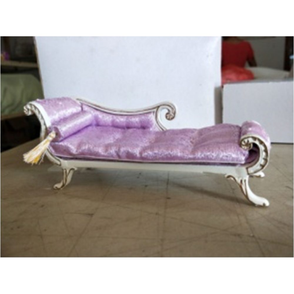 Нарядная кушетка с тканевой обивкой для кукольного дома или румбокса. Миниатюрная мебель выполнена из дерева, цвет белый.