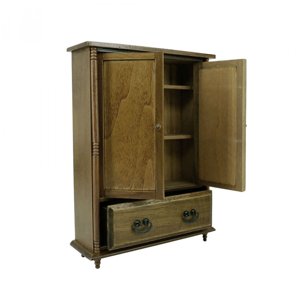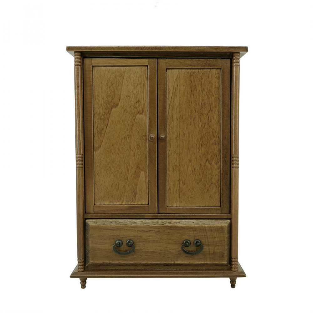 Массивный шкаф для кукол из натурального дерева станет достойным дополнением прихожей, спальни, гостиной или кабинета в кукольном доме масштабом 1:12