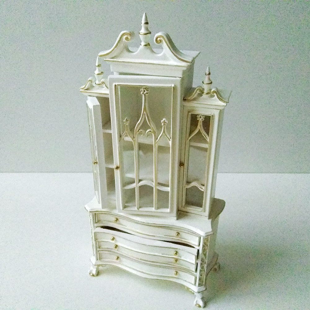 Элегантный шкаф-комод для кукол из натурального дерева станет достойным дополнением столовой, гостиной или кабинета в кукольном доме. За прозрачными дверцами будет хорошо видна посуда, книги и другие предметы интерьера.