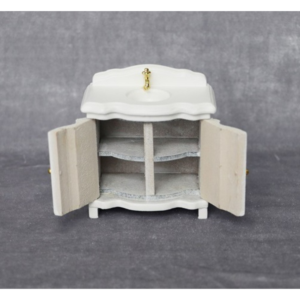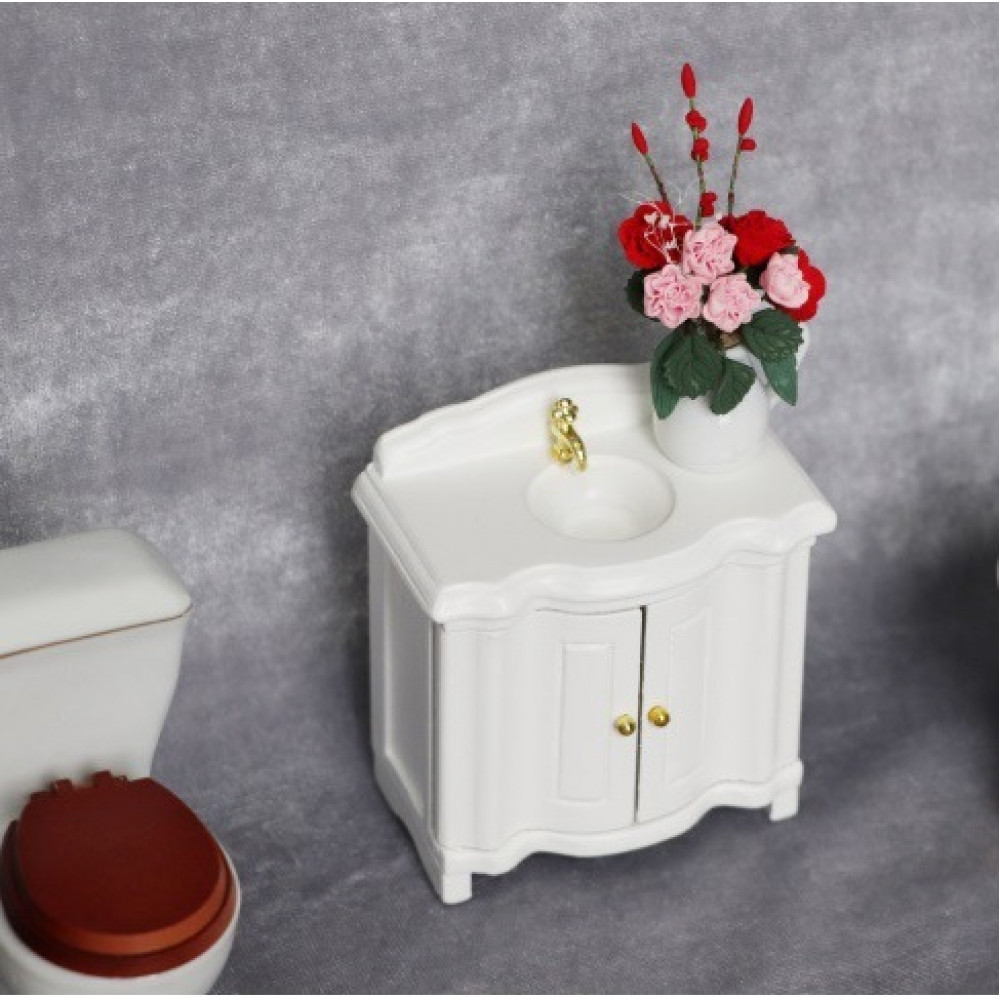 Миниатюрная раковина с тумбой для кукольной ванной комнаты - Миниатюра для кукол (размер около 12 см).