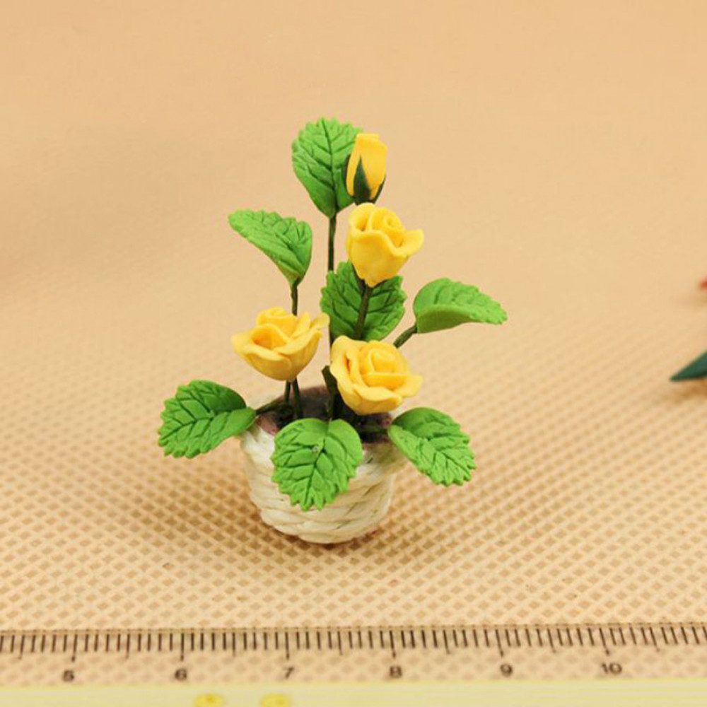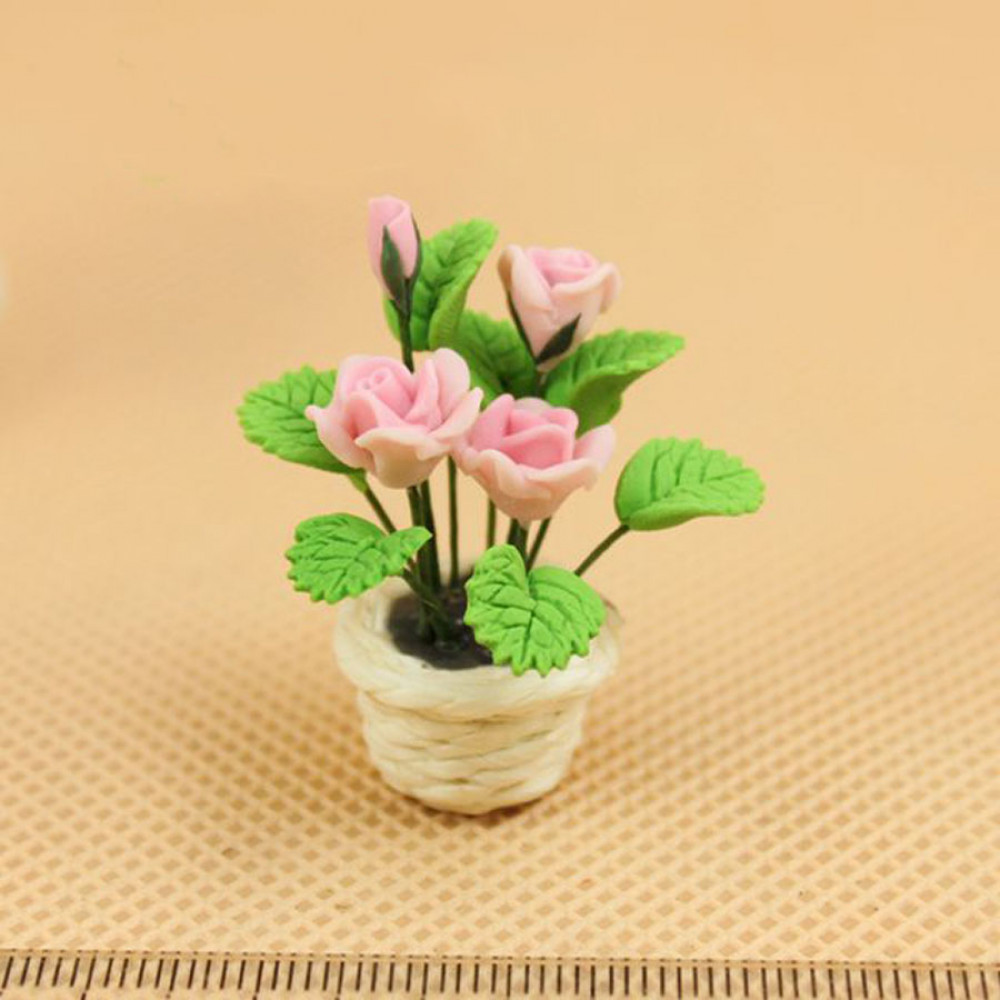 Розы в белом горшочке для кукольного дома 1:12