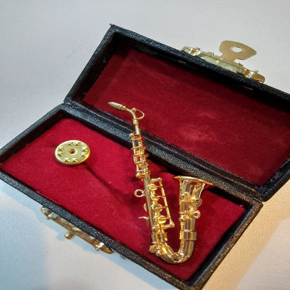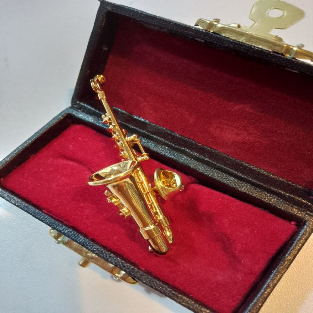 Размер саксофона 70*20*10 мм, размер футляра - 80 х 35 х 25 мм