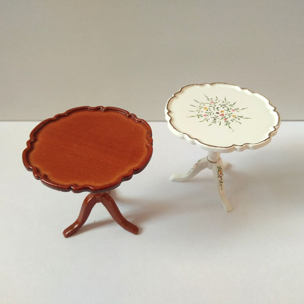 Стол для кукол круглый резной Орех/Белый Миниатюра 1:12