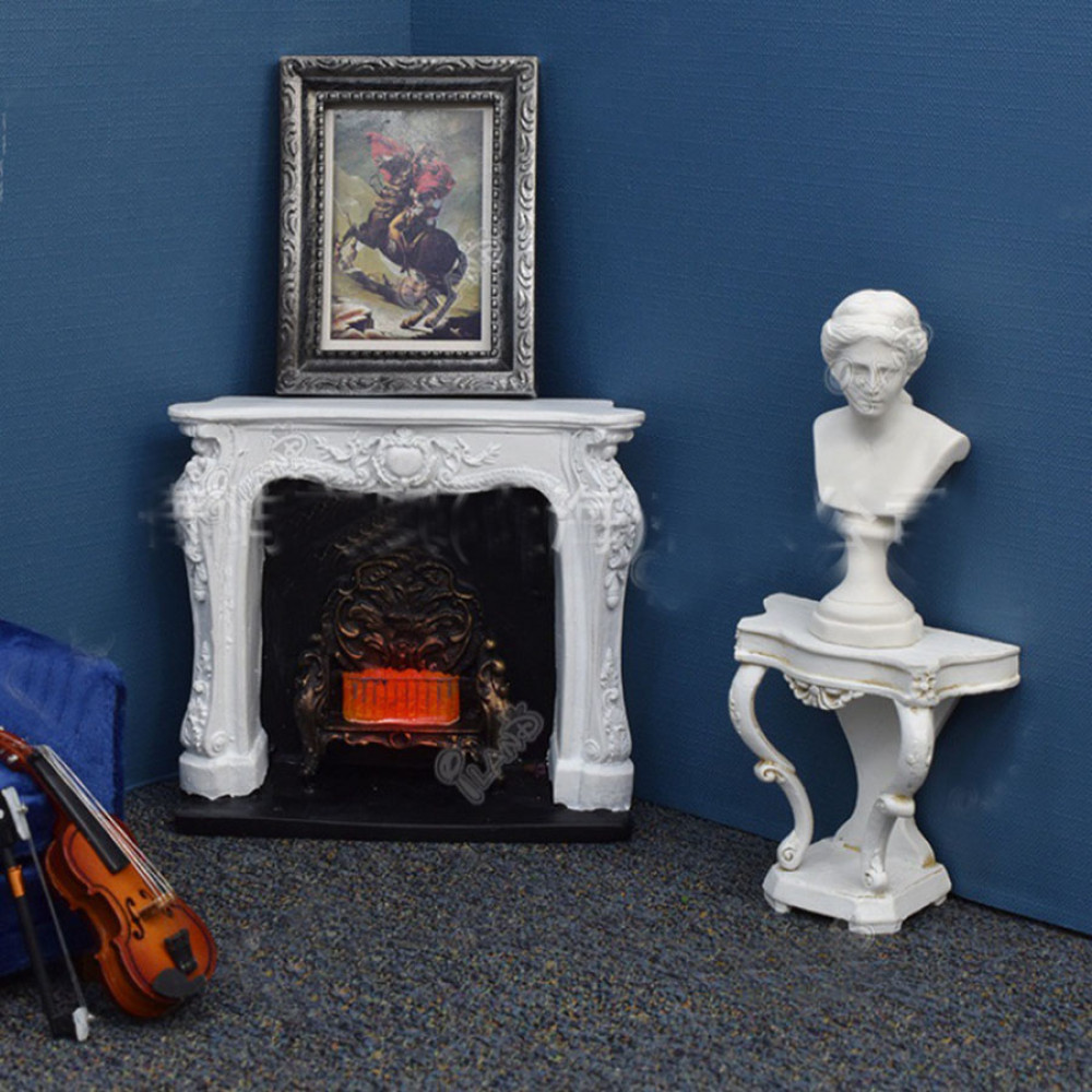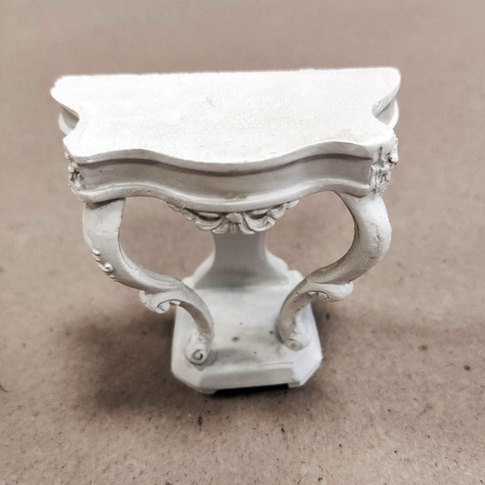 Миниатюрный консольный столик в стиле рококо белого цвета для кукольного дома или румбокса.