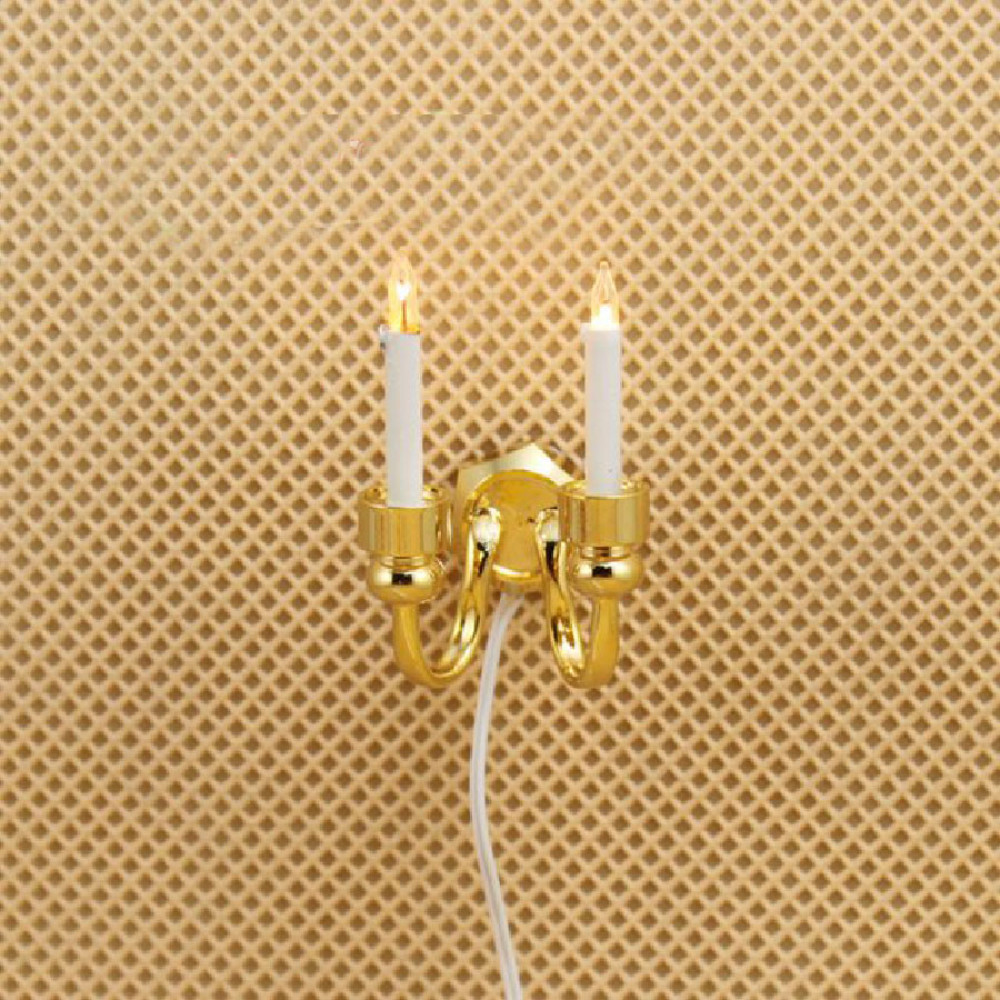 Миниатюрное освещение для румбоксов и кукольных домиков - бра с подсвечниками, металл золото. Миниатюра 1/12