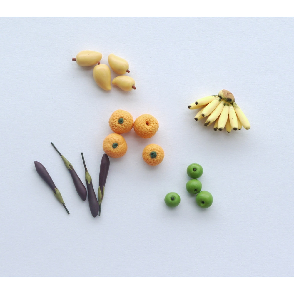 Крохотные овощи из пластики, выполнены вручную. Масштаб миниатюры 1:12.