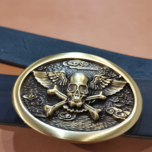 Пряжка для ремня декоративная с изображением черепа на крыльях.Материал: латунь, чернениеРазмер: 55х..