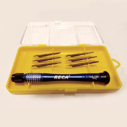 Набор насадок мини-отверток, 6 шт. Ручка с цанговым креплением - в комплекте. На ручку нанесен..