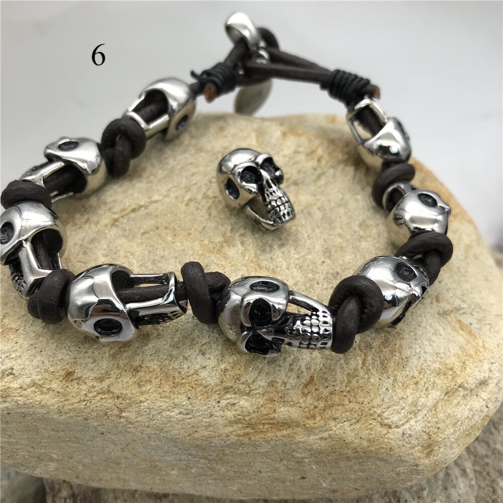 Бусины для браслета в виде черепа для кожаных шнуров круглого сечения