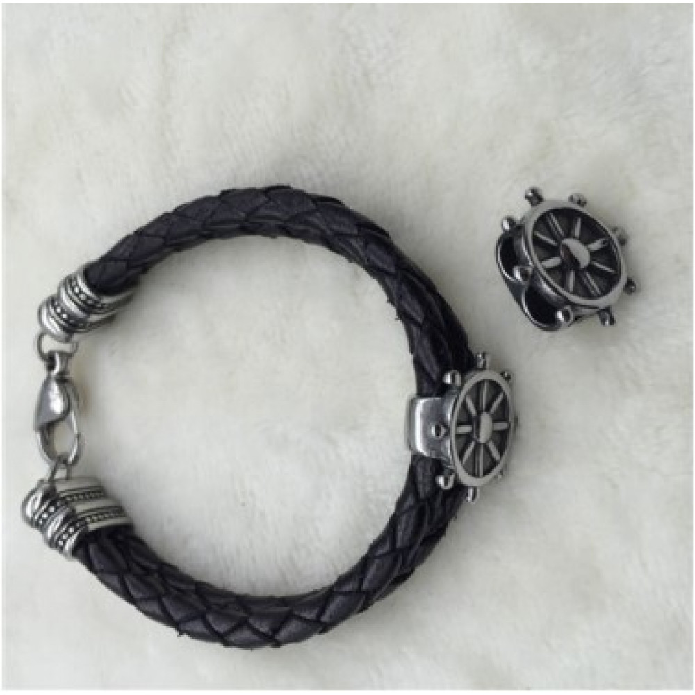 Бусины с морской символикой в виде штурвала для двух ремешков диаметром 5 мм.