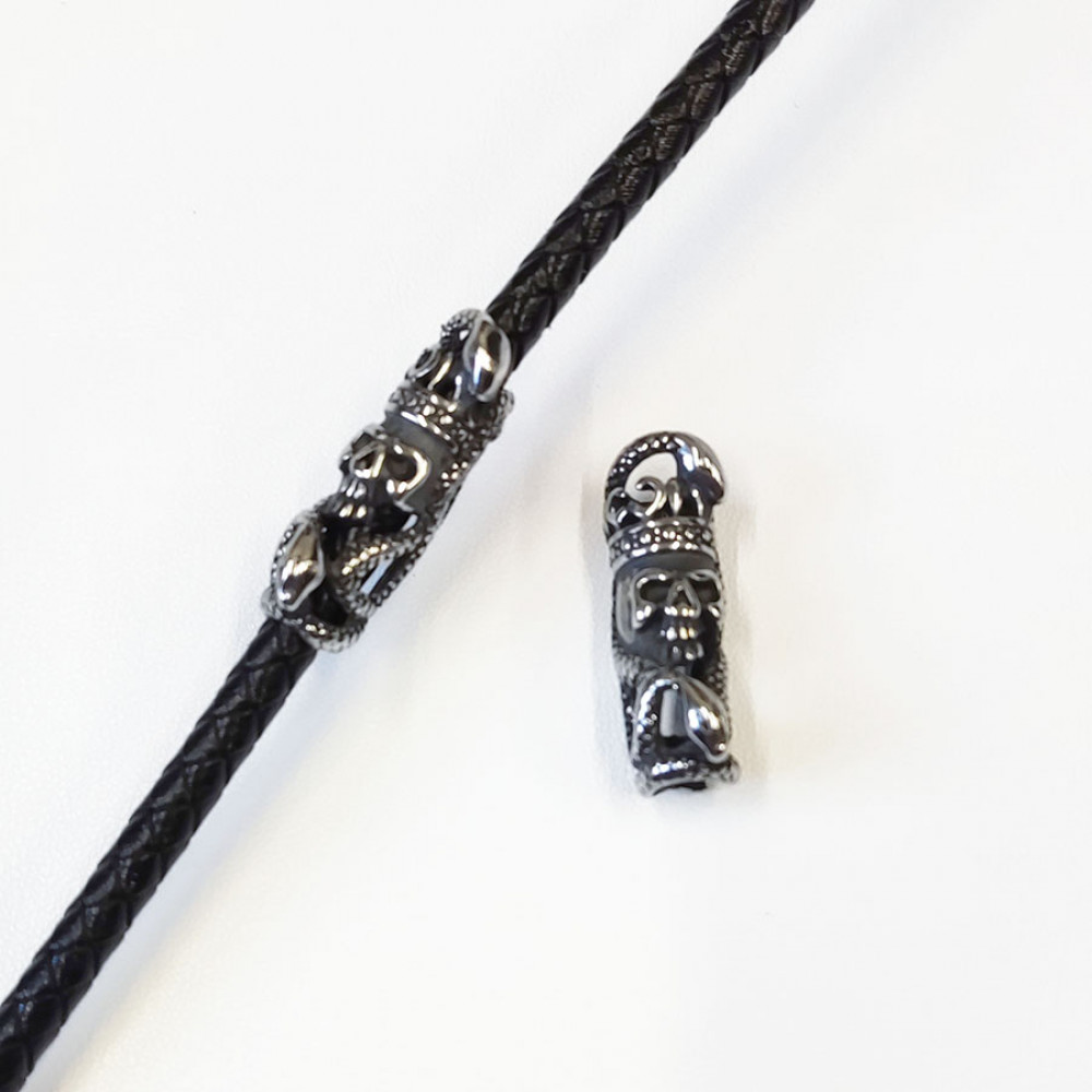 Бусина в виде черепа с короной, оплетенном змеями для браслета из шнуров круглого сечения диаметром 6 мм, внешние размеры бусин: 32х12 мм