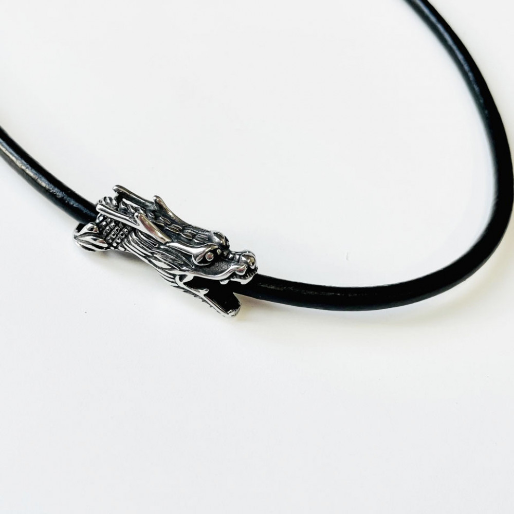 Бусина в виде головы дракона для браслета из шнуров круглого сечения диаметром 6 мм, внешние размеры бусин: 38х15 мм