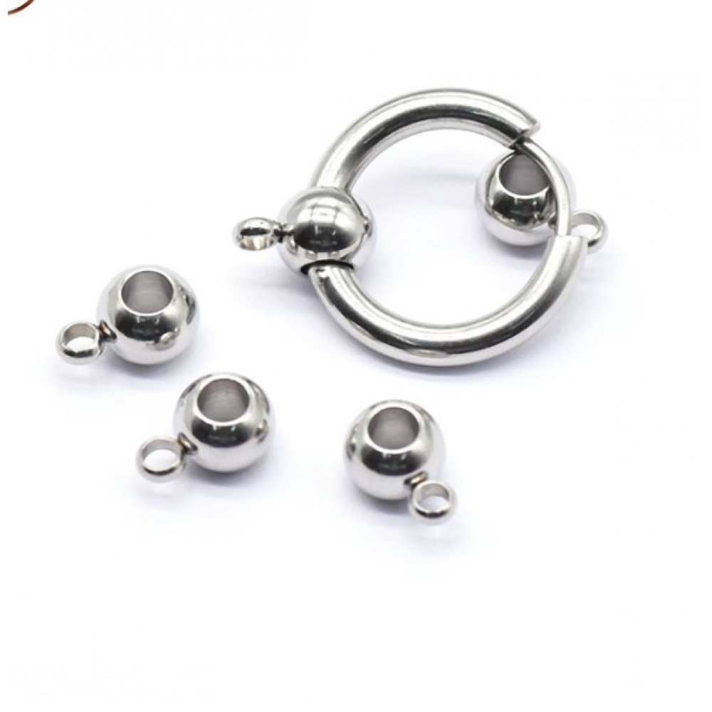 Бусины для браслета для кожаных шнуров круглого сечения 6 мм, внутренний диаметр колечка - 4 мм.
