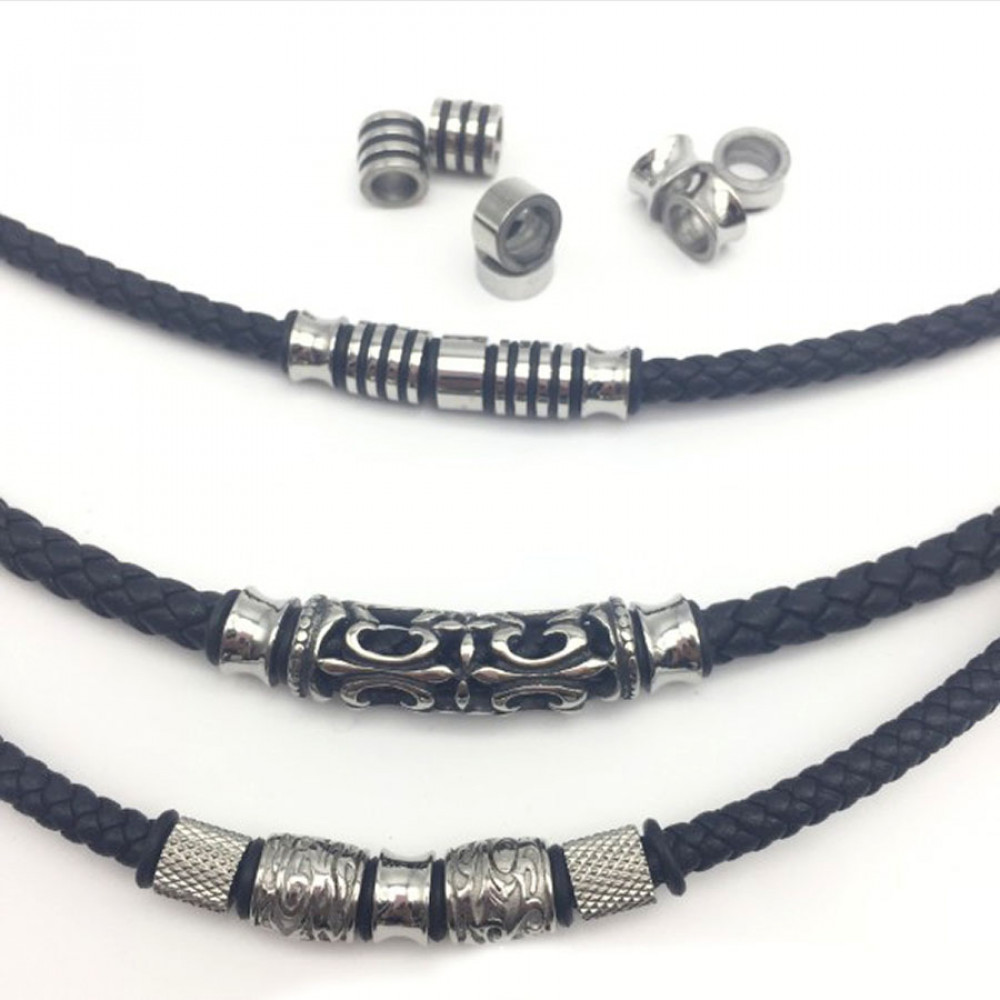 Бусины для браслета разных видов для кожаных шнуров круглого сечения 5 мм.