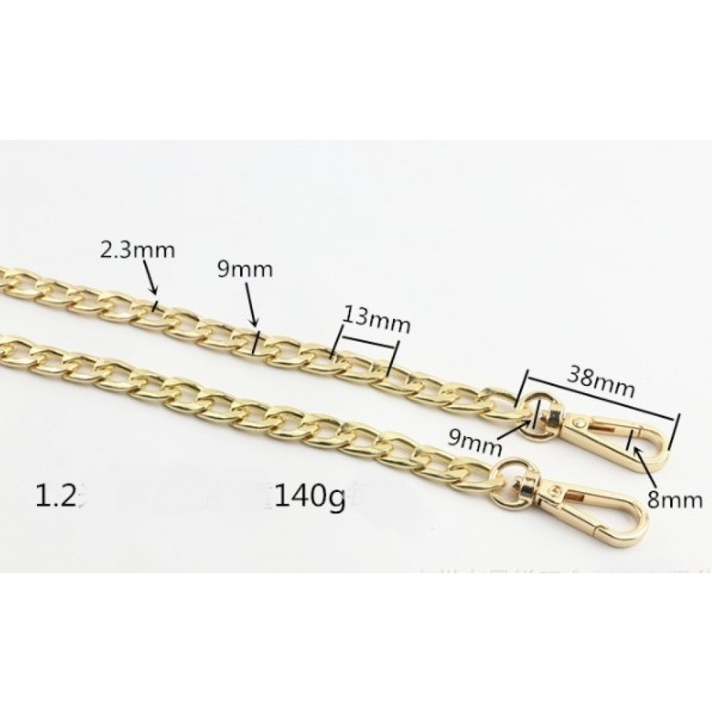 Декоративная галантерейная цепь с 2 карабинами (поворотными. Цепочки представлены в разных цветовых вариантах - под никель/серебро, золото, черно-серый. Галантерейные цепи подойдут для сумочек, клатчей и других галантерейных изделий