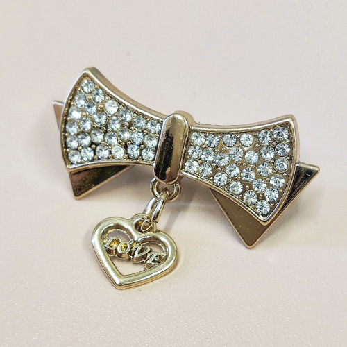 Металлическое украшение для кожи - декоративный зажим в форме бантика со стразами. Подойдет для деко..
