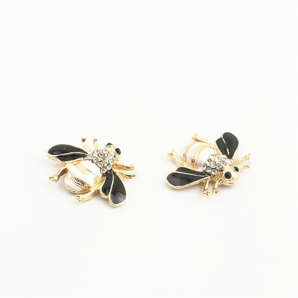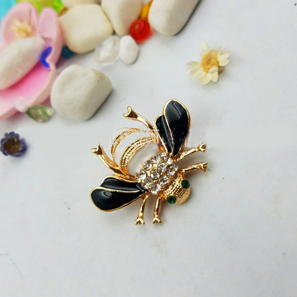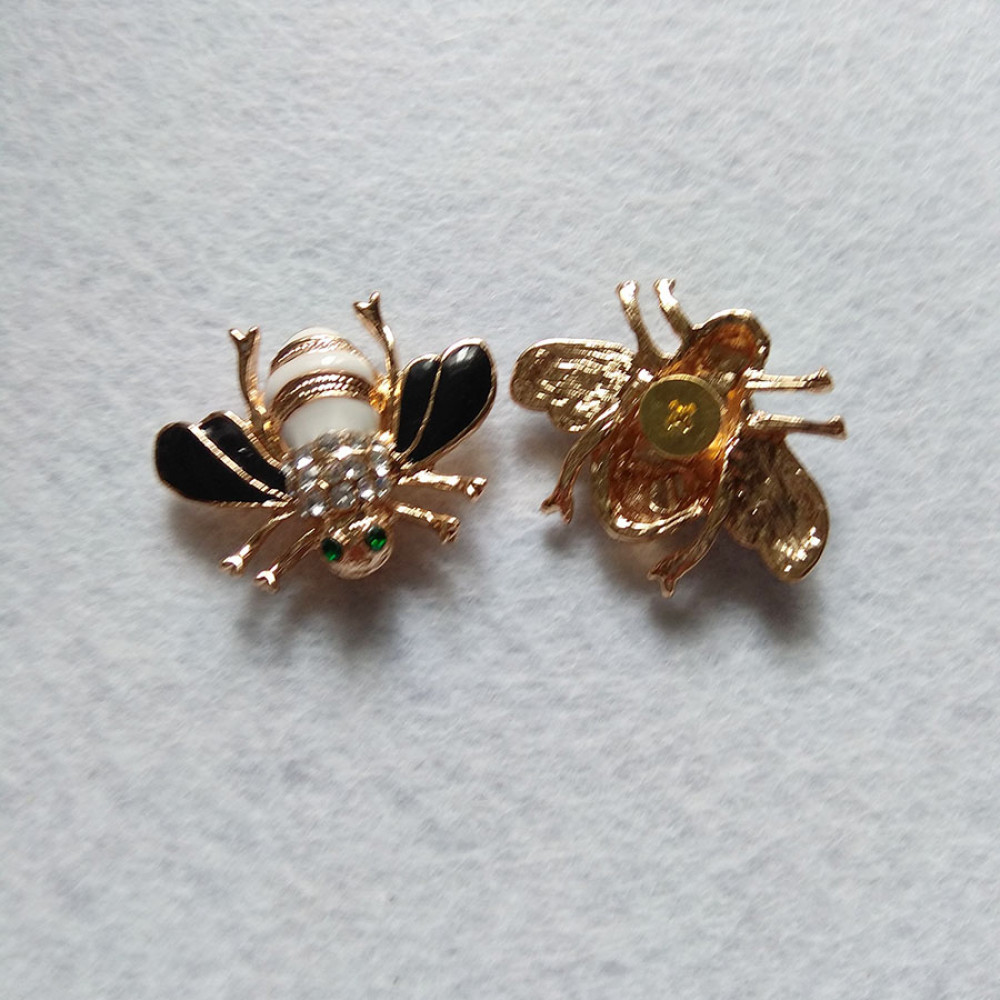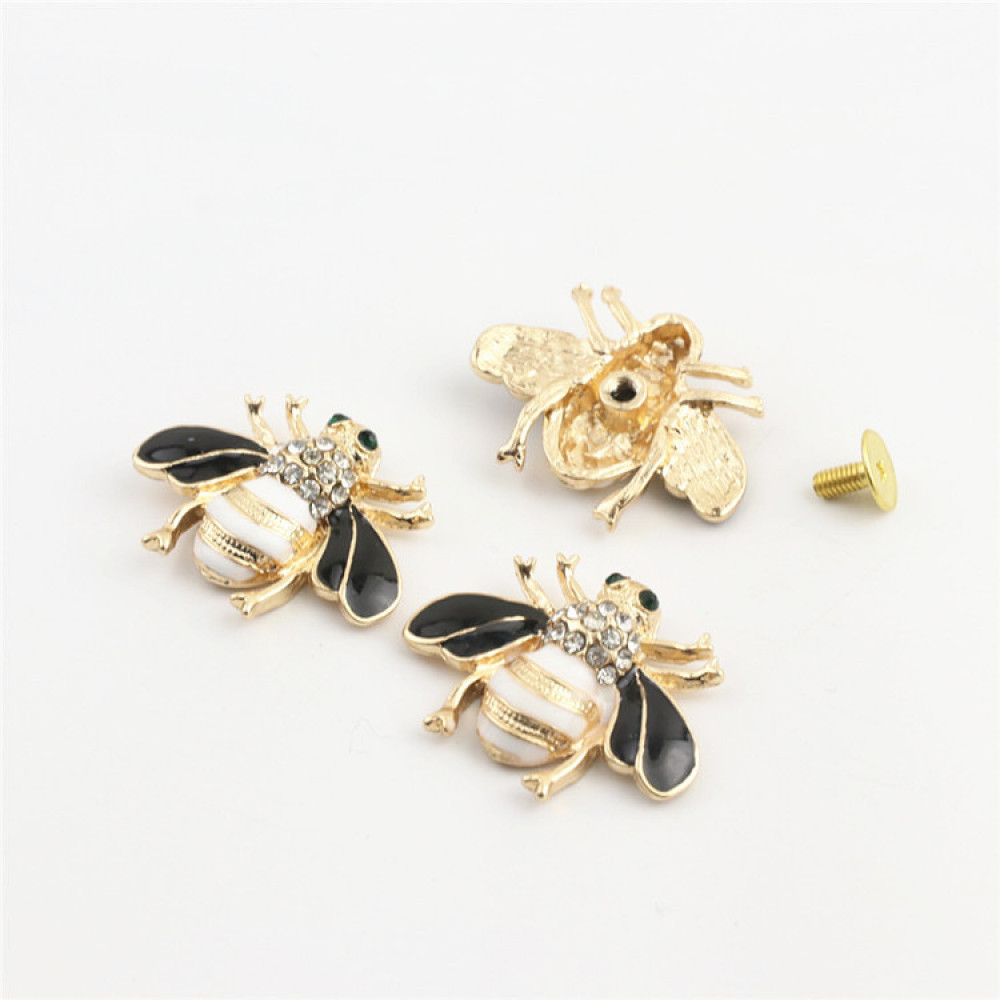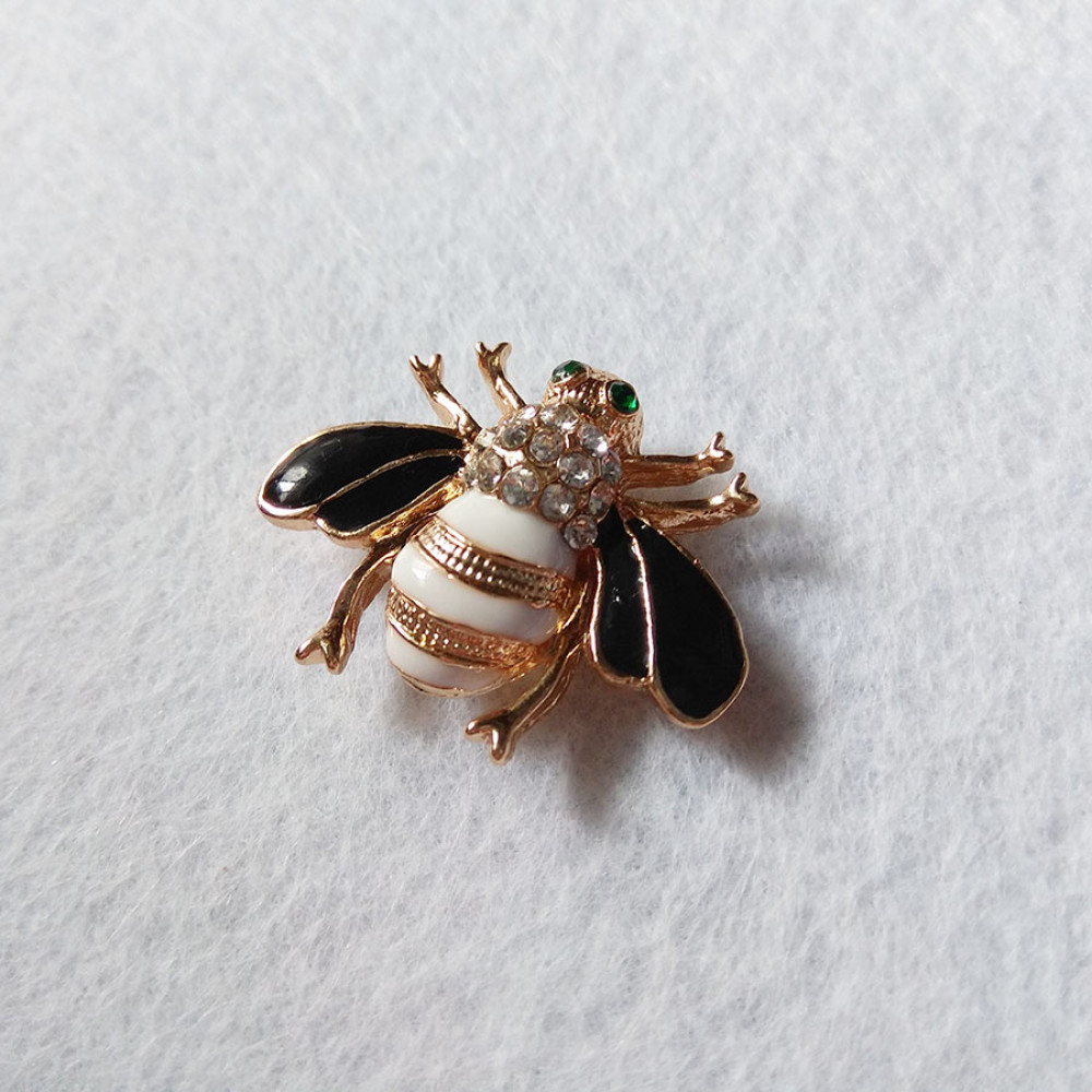 Металлическое украшение для кожи - декоративный зажим в виде насекомого, украшенного стразами, с белым брюшком и черными крылышками