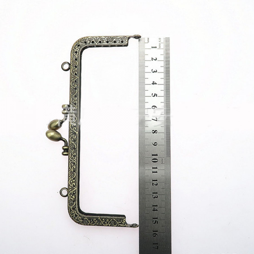 Фермуар пришивной из металла бронзового цвета. Подходит для изготовления кошельков, очечников, футляров, косметичек. Выполнен с петелькой под ремешок, цепочку или для возможности прикрепить украшение, подвеску. По внутреннему периметру имеет отверстия для соединения с тканью или войлоком.