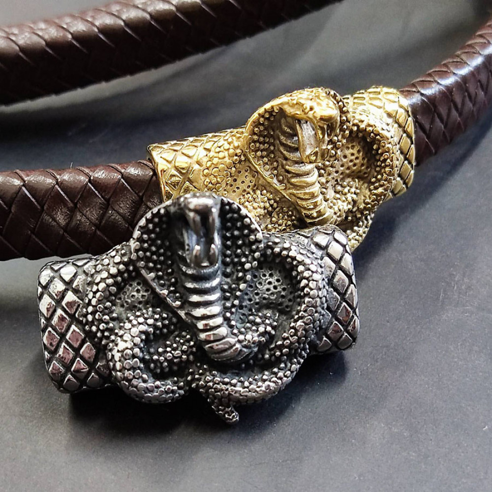 Бусины для браслета с коброй имеют овальное отверстие с сечением 12,5х7 мм, внешний размер - 38,5х16,5 мм