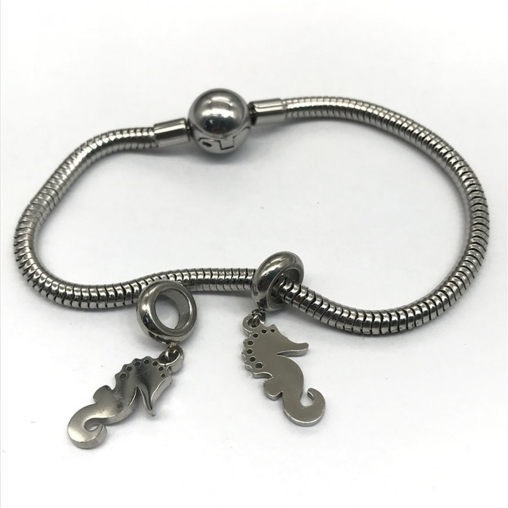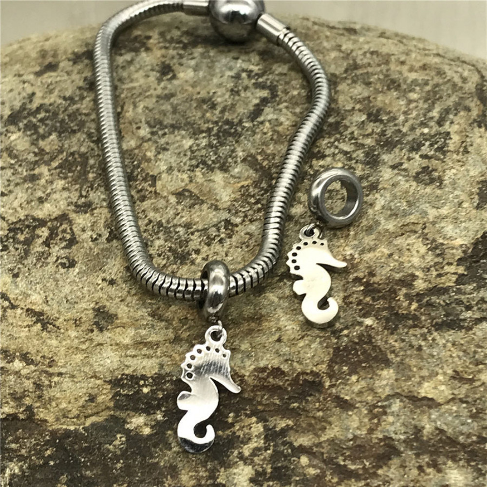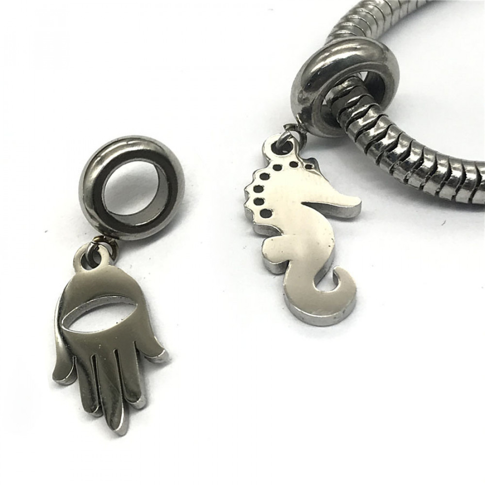 Бусины для браслета для кожаных шнуров круглого сечения с подвеской (рука или морской конек)