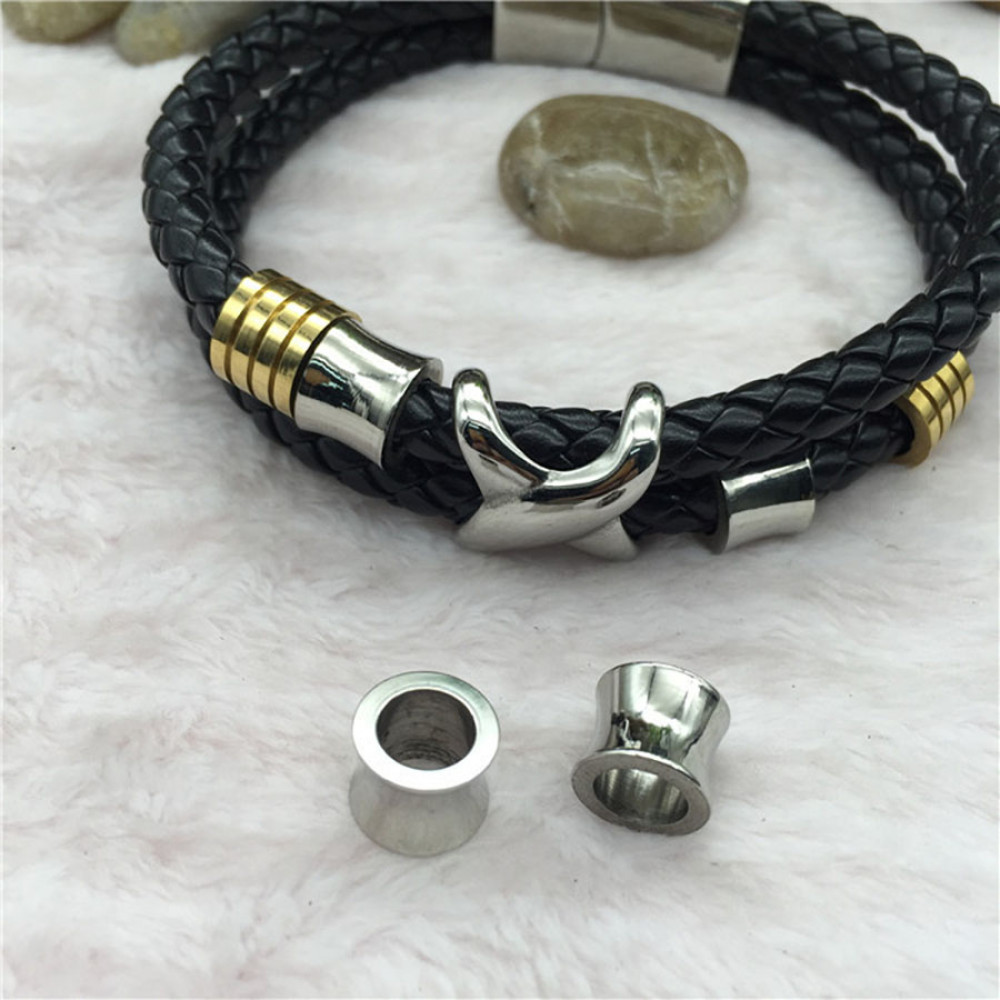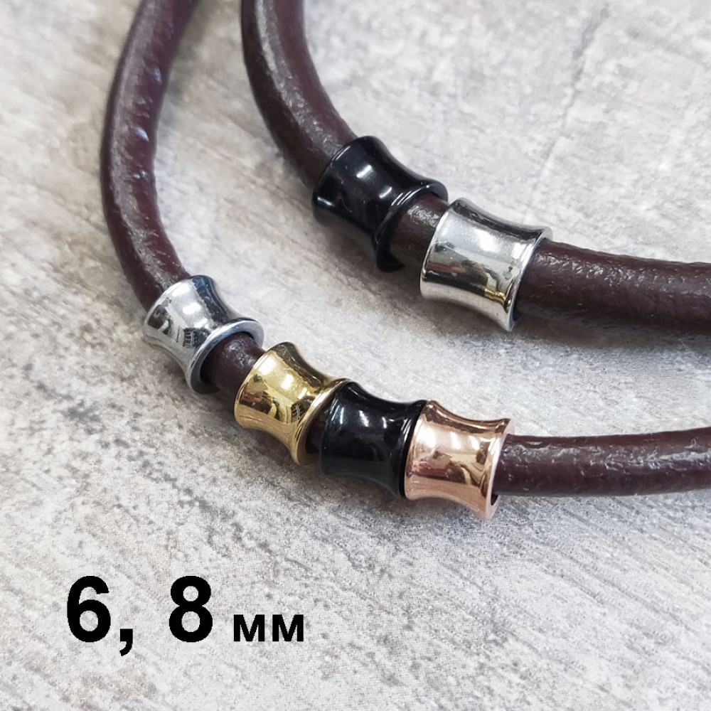Бусины для браслета разных видов для кожаных шнуров круглого сечения от 4 до 8 мм.